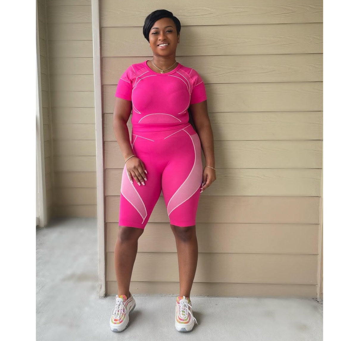 Let's get it ladies, cool colorful work out short set come in blue or pink.